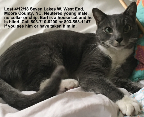 Lost Cat Gray And White Tuxedo Cat In West End Cat Is Blind Update Found Pets Thepilot Com